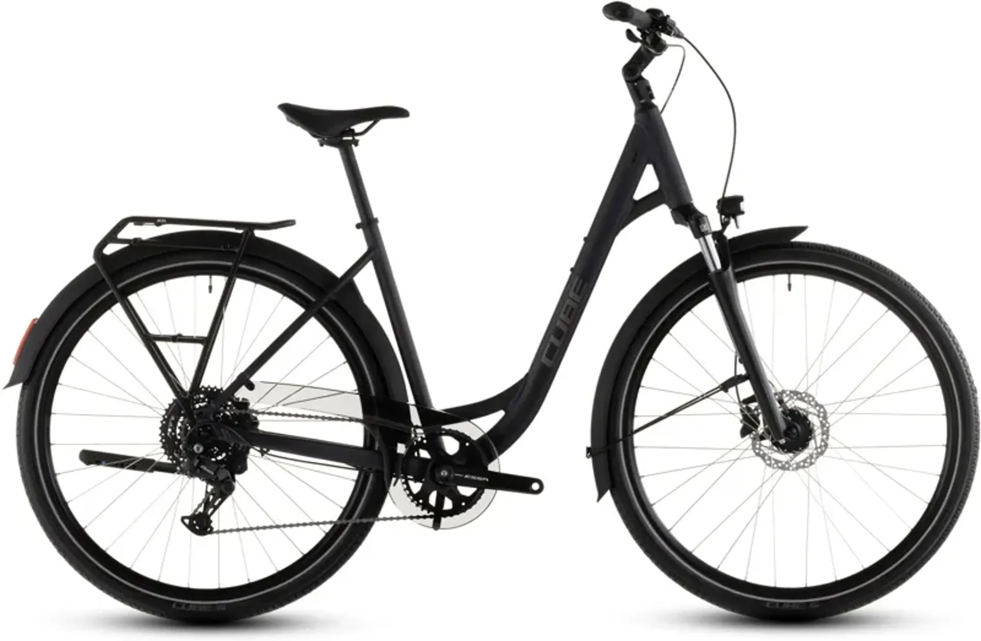 The Touring ONE's full equipment package and comfortable design is just what you need to broaden your cycling horizons. Easy-to-use 1x8 Shimano Essa gears.
